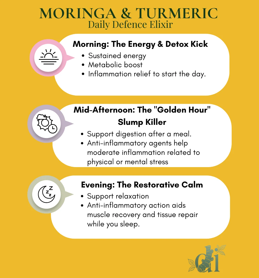 When your energy dips and your body feels inflamed, Moringa & Turmeric helps you reset from within.